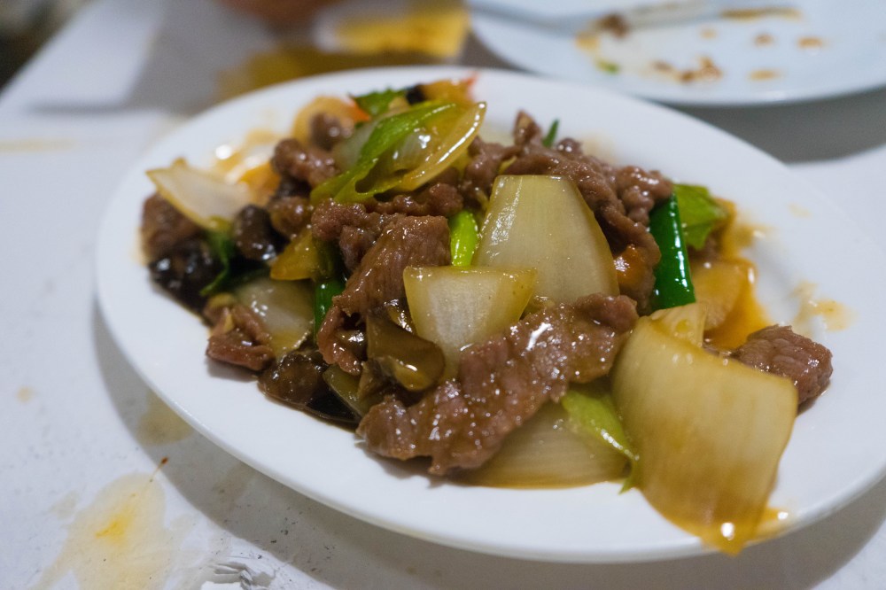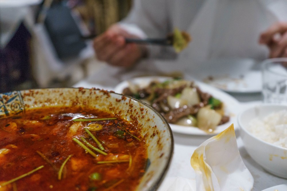 Inoltre offrono i piatti tipici del Sichuan, ovvero ogni parte di maiale. Ecco così che i più coraggiosi ordinano le orecchie, i reni, le zampe, le interiora. Tutto molto, molto unto e sugnoso.